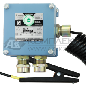 Устройства заземления автоцистерн, бензовозов и др. транспортных ёмкостей с целью отвода зарядов статического электричества при проведении слива-налива с одновременным постоянным контролем сопротивления заземляющей цепи не более 90 Ом и подсоединением к транспортной ёмкости при помощи зажима из материала предотвращающего образование статического электричества УЗА-4К, УЗА-4К-02.